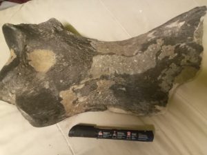 El director del Museo de Mar de Ajó, Diego Gambetta, confirmó el hallazgo de un fémur semi completo de un perezoso gigante “Megatherium” en la zona sur de Punta Médanos, un descubrimiento que aporta nueva información sobre la fauna extinta pampeana.