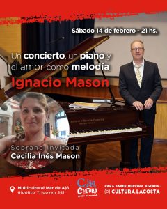 El espectáculo reunirá al pianista Ignacio Mason y a la soprano Cecilia Inés Mason en una velada muy especial. Esta presentación se enmarca en la agenda impulsada por la Municipalidad de La Costa para acercar opciones artísticas y de entretenimiento a toda la comunidad.