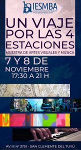 El Instituto de Educación Superior Municipal de Bellas Artes invita a la comunidad a recorrer su muestra final del ciclo lectivo 2025, titulada “Un viaje por las cuatro estaciones”, que se llevará a cabo los días 7 y 8 de noviembre, de 17.30 a 21.00, en la sede ubicada en Avenida III N° 3751, San Clemente del Tuyú.