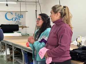 La subsecretaria Técnica, Administrativa y Legal del Ministerio de Mujeres y Diversidad de la Provincia de Buenos Aires, Mercedes Castilla, visitó el Polo Textil Municipal de La Costa para conocer la experiencia de trabajo que se desarrolla junto a cooperativas y productoras textiles locales.