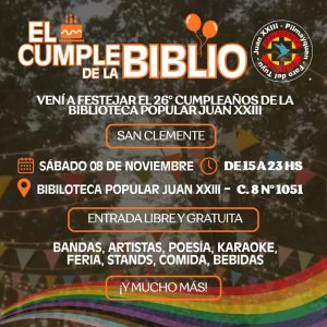 La Biblioteca Popular Juan XXIII celebra su 26° aniversario con una jornada cultural abierta a la comunidadLa Biblioteca Popular Juan XXIII celebra su 26° aniversario con una jornada cultural abierta a la comunidad